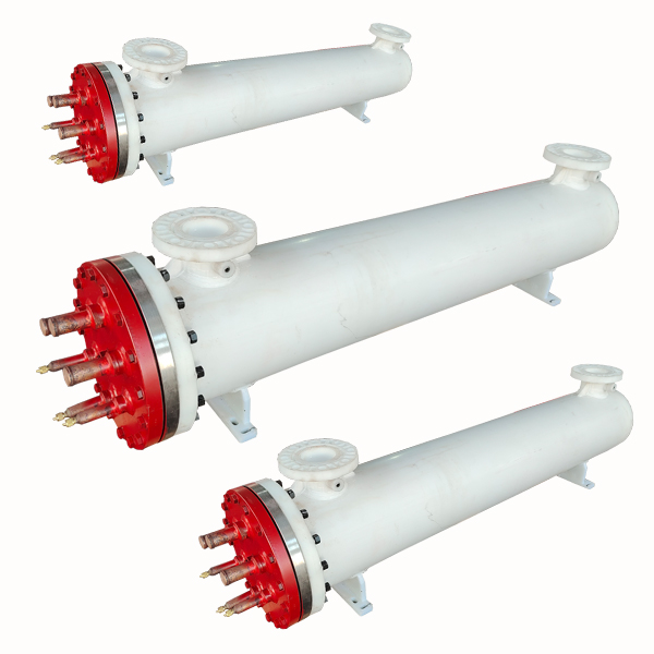 The combined pure titanium evaporator adopts the structure of upper and lower double barrels.The upper and lower barrels make internal diversion, so that the flow of chemical liquid changes direction.Also the cold and heat exchange is uniform.